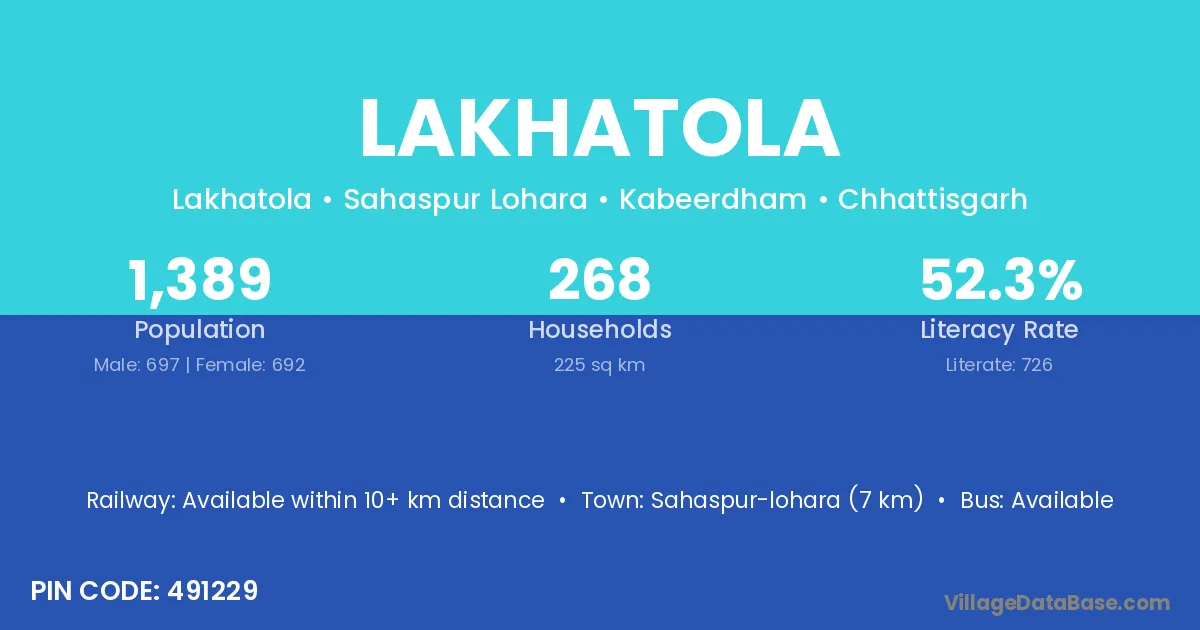 According to Census 2011 information, the village code of Lakhatola village is 491229.