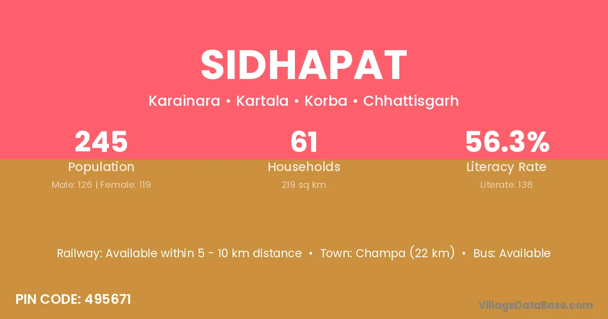 Champa (22 km) is the nearest town to Sidhapat village for major economic activities and is located approximately 22 km away.