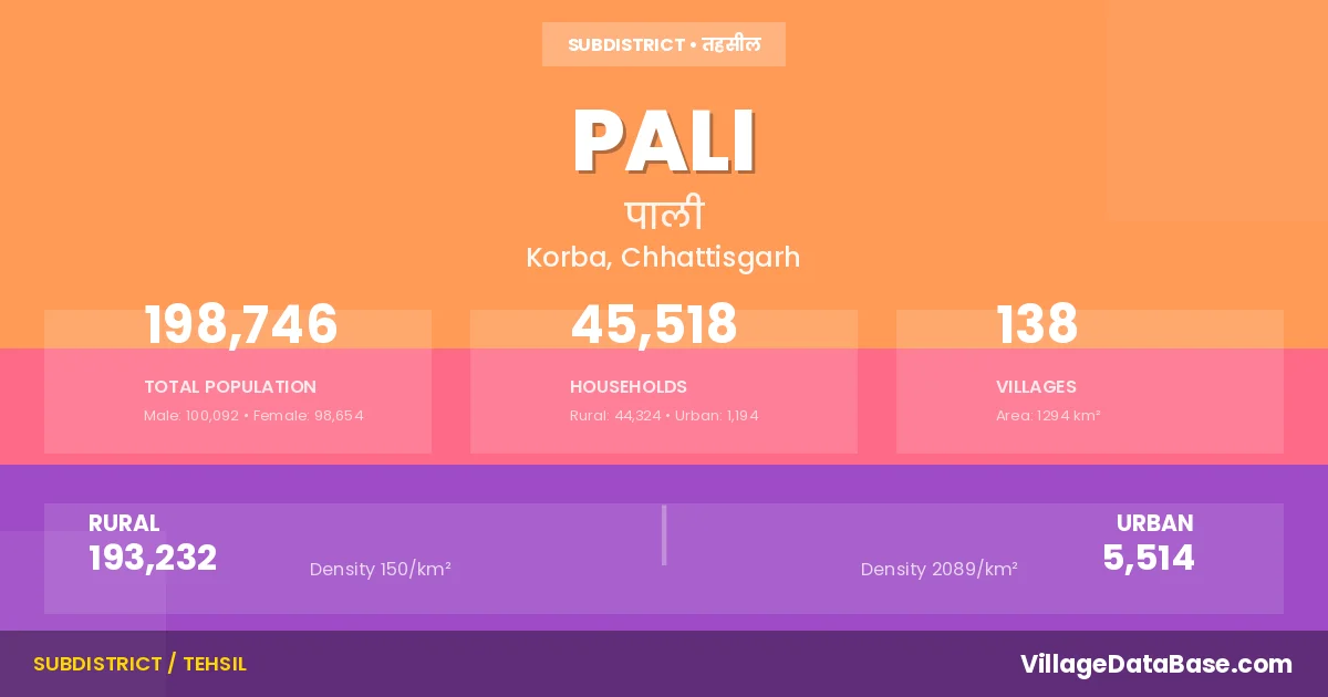 Pali is a town and Tehsil in the Korba district of the Chhattisgarh. In India, a Tehsil is a subdivision of a district responsible for the administration and revenue collection of a specific area within the district. Tehsils play a crucial role in the local governance structure, contributing significantly to the development and administration of their communities.