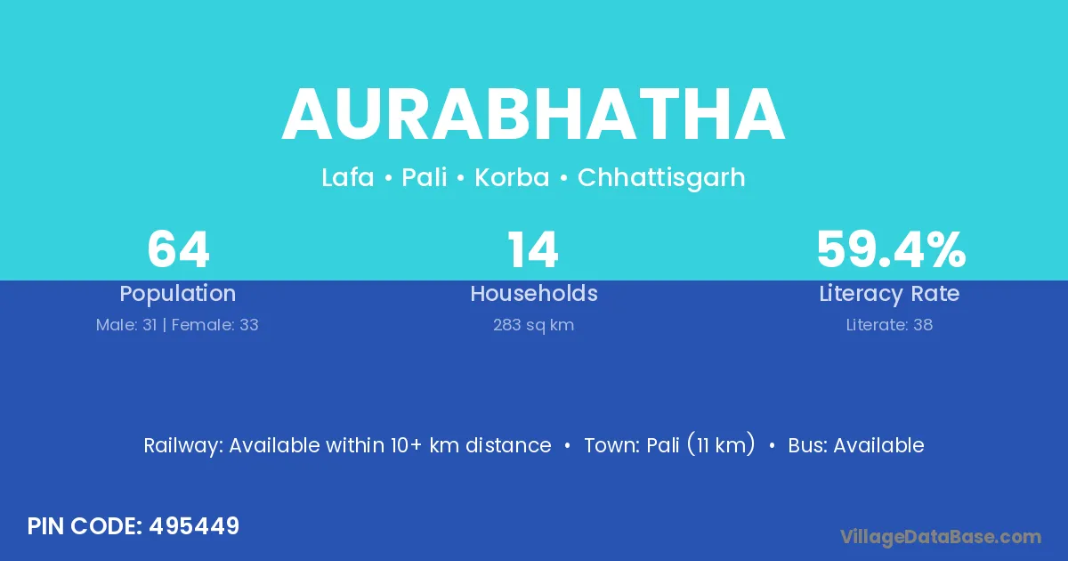 Aurabhatha village has a total population of 64 people, of which 31 are males and 33 are females.