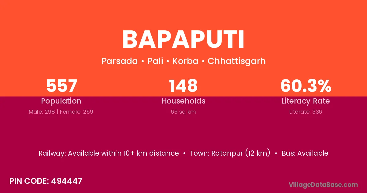 Ratanpur (12 km) is the nearest town to Bapaputi village for major economic activities and is located approximately 12 km away.
