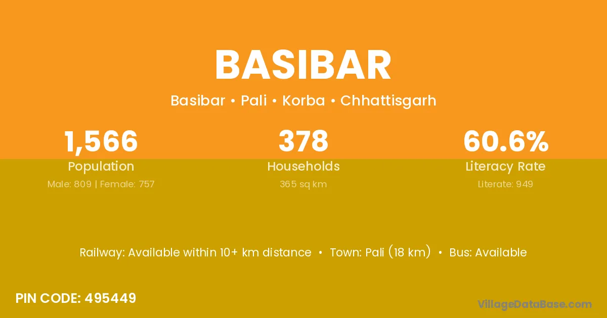 Basibar village is located in the Pali Tehsil of the Korba district in Chhattisgarh .
