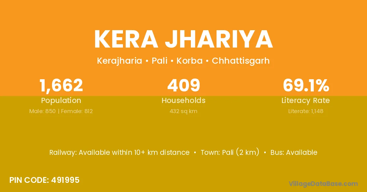 According to Census 2011 information, the village code of Kera Jhariya village is 491995.