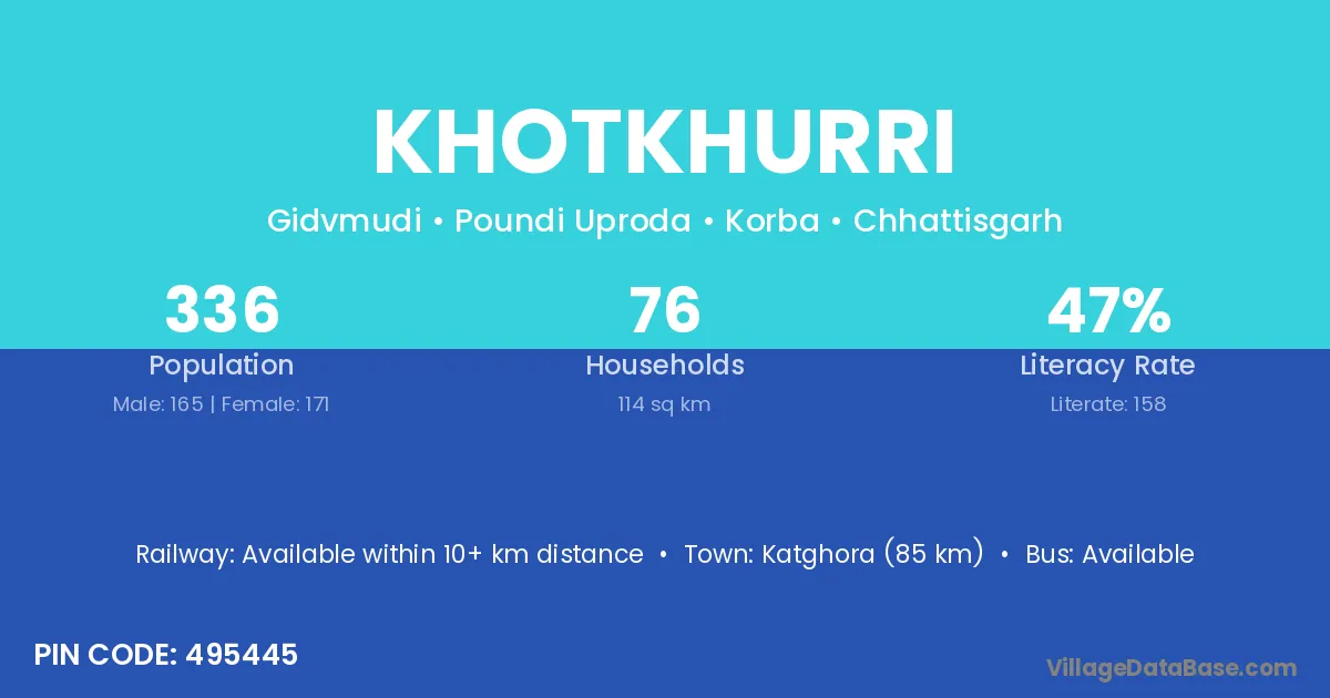 According to Census 2011 information, the village code of Khotkhurri village is 495445.