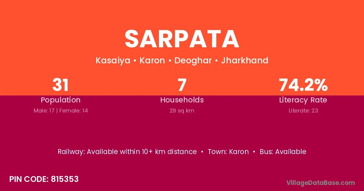 The literacy rate of Sarpata village is 60.43%. Male literacy stands at 72.64% and female literacy at 48.10%.
