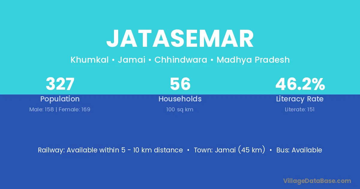 The literacy rate of Jatasemar village is 38.10%. Male literacy stands at 47.75% and female literacy at 29.17%.