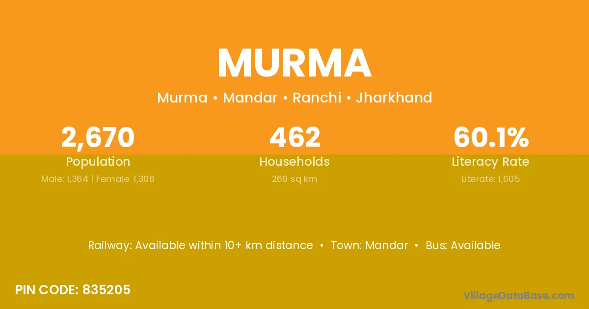 Baikunthpur (25 km) is the nearest town to Murma village for major economic activities and is located approximately 25 km away.