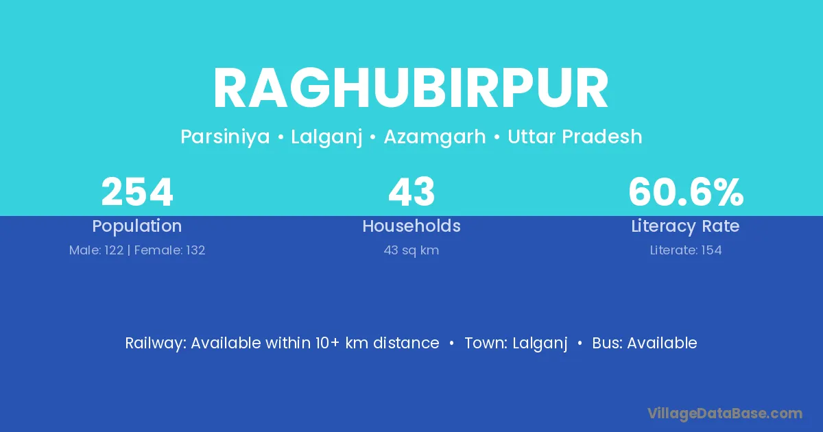 Baikunthpur (20 km) is the nearest town to Raghubirpur village for major economic activities and is located approximately 20 km away.