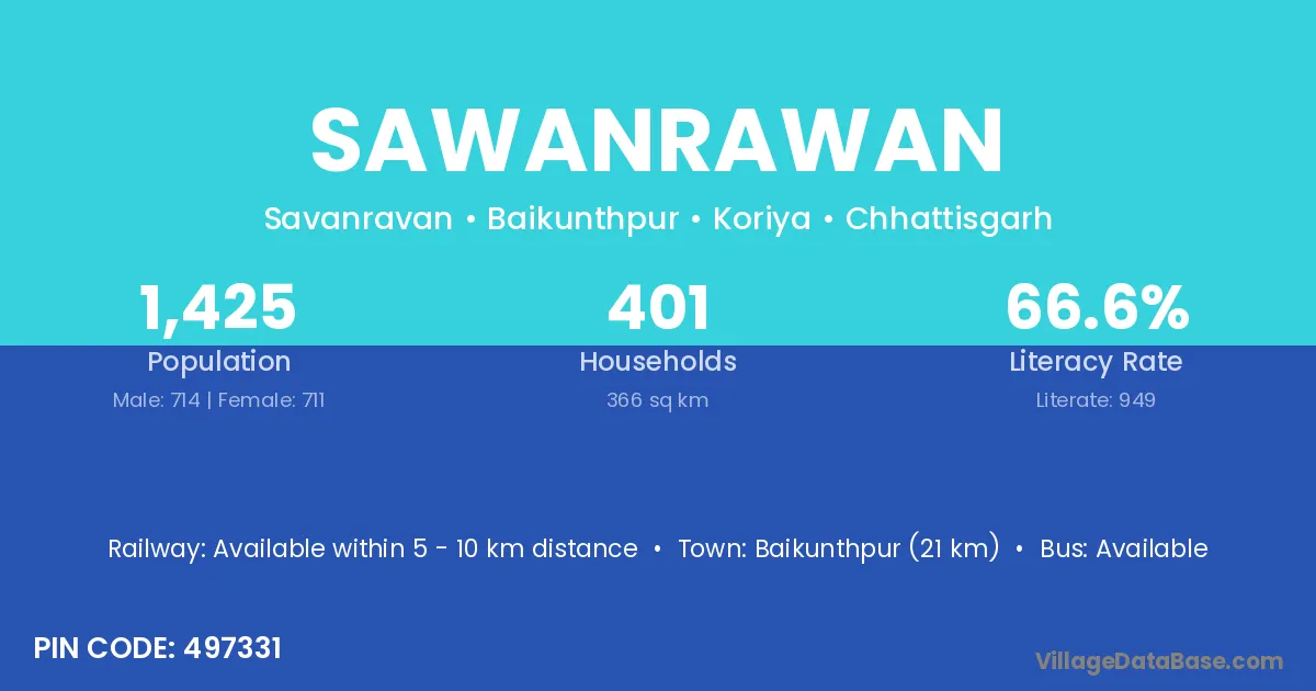 Baikunthpur (21 km) is the nearest town to Sawanrawan village for major economic activities and is located approximately 21 km away.