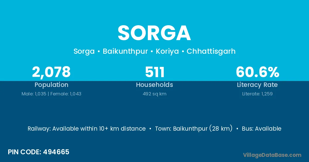 Baikunthpur (28 km) is the nearest town to Sorga village for major economic activities and is located approximately 28 km away.