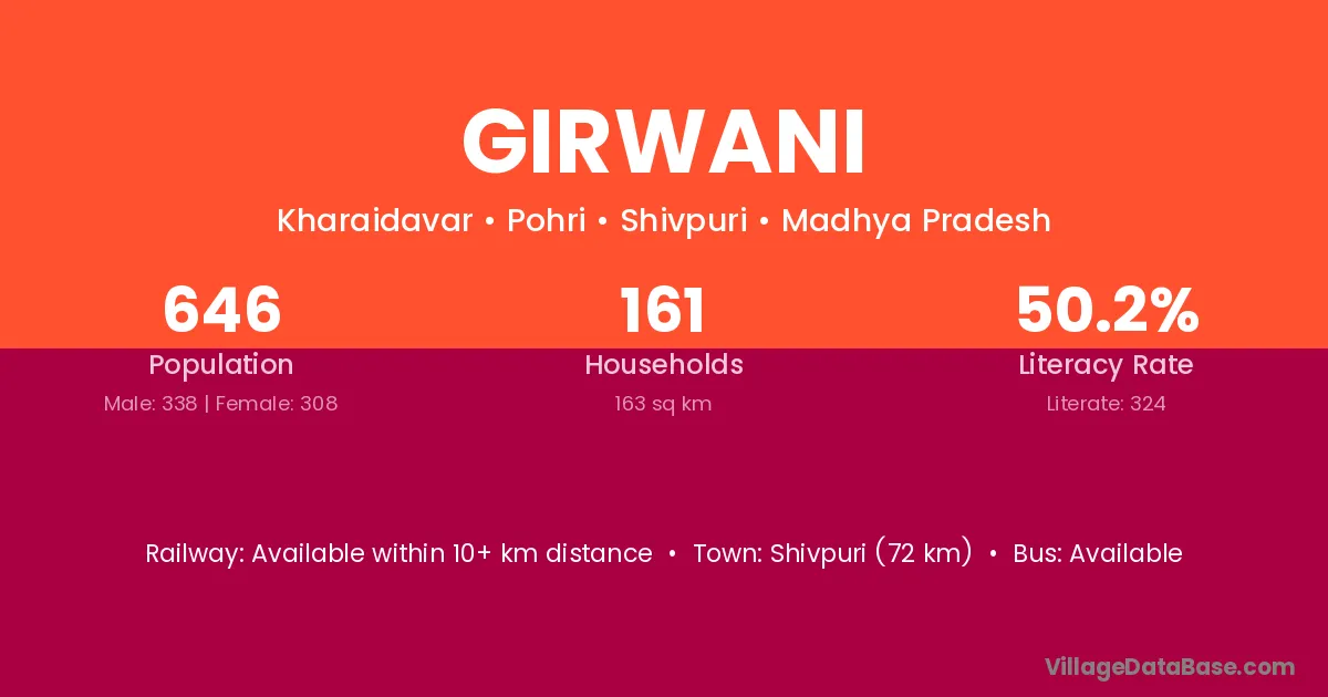 Girwani village has a total population of 307 people, of which 167 are males and 140 are females.