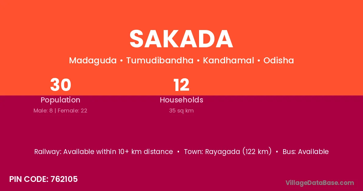 Chirmiri (50 km) is the nearest town to Sakada village for major economic activities and is located approximately 50 km away.