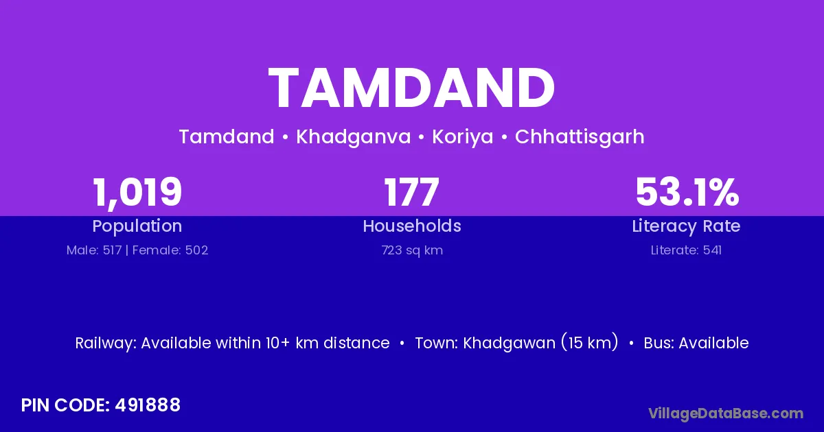 According to Census 2011 information, the village code of Tamdand village is 491888.