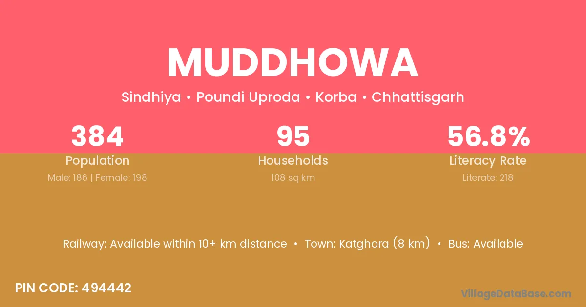 According to Census 2011 information, the village code of Muddhowa village is 497442.
