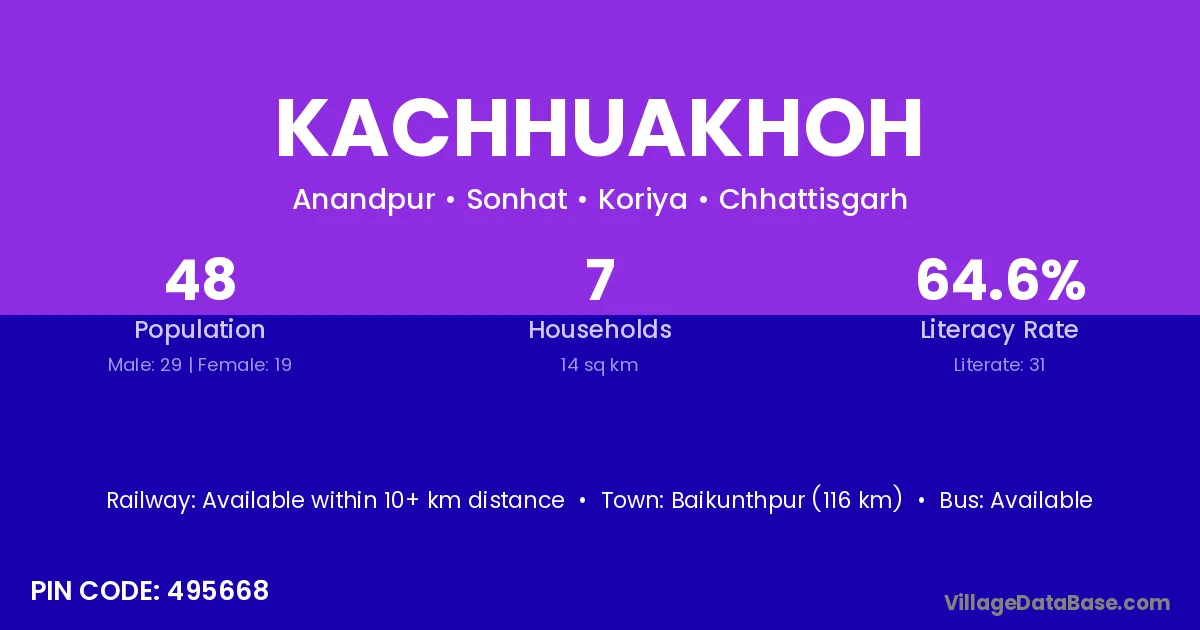 Kachhuakhoh village has a total population of 48 people, of which 29 are males and 19 are females.