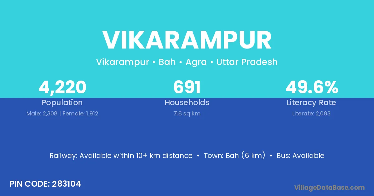 The literacy rate of Vikarampur village is 55.14%. Male literacy stands at 64.62% and female literacy at 42.64%.