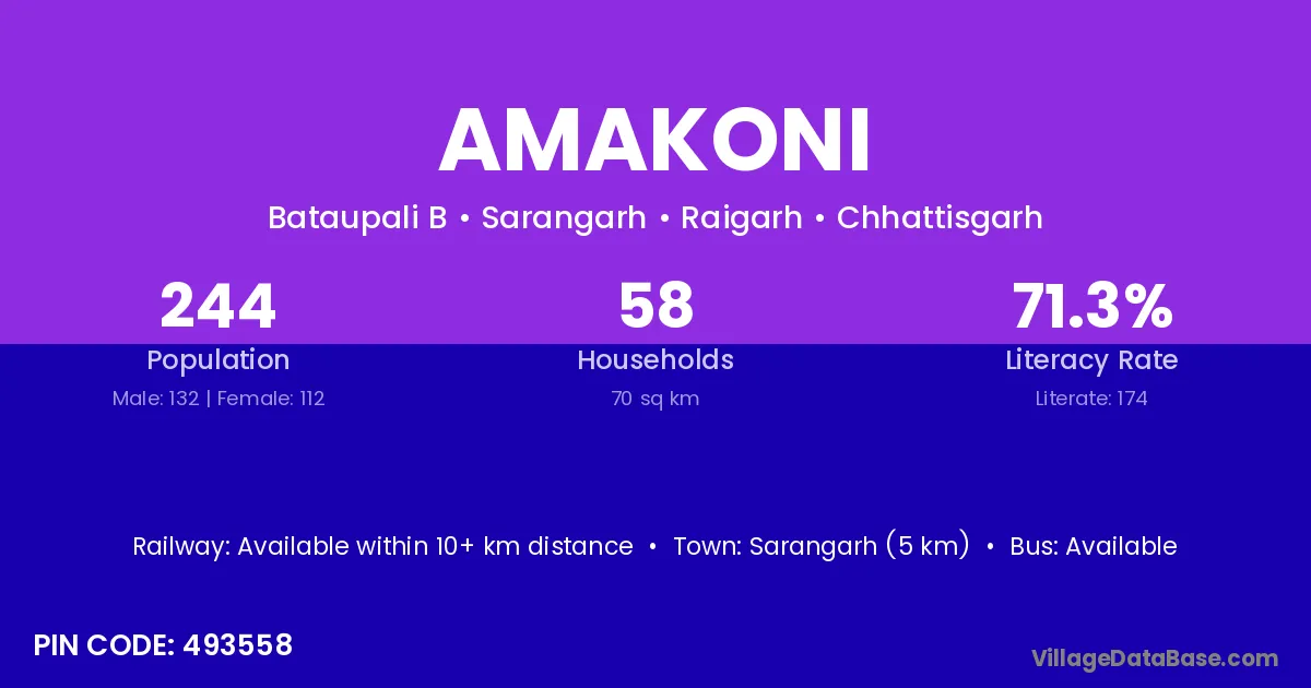 According to Census 2011 information, the village code of Amakoni village is 492112.