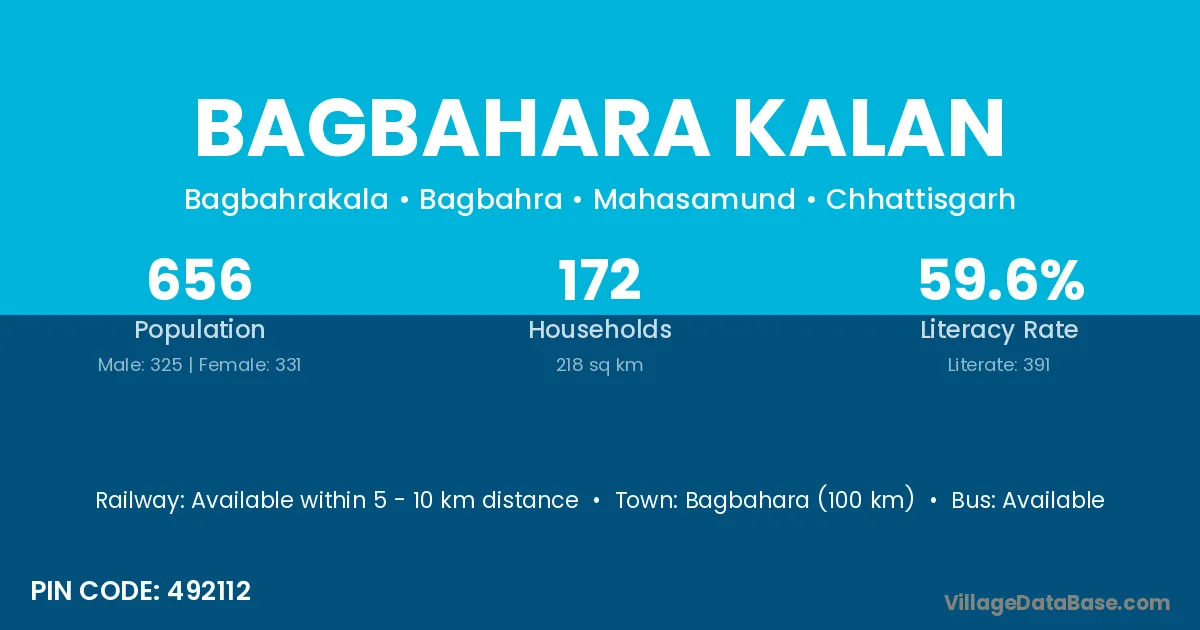 Bagbahara Kalan village has a total population of 656 people, of which 325 are males and 331 are females.