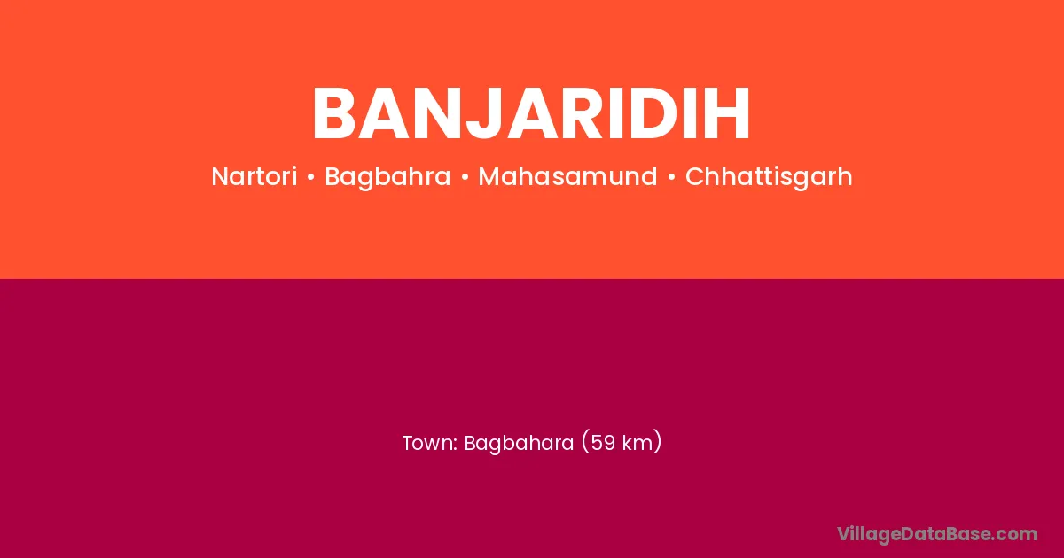 Bagbahara (59 km) is the nearest town to Banjaridih village for major economic activities and is located approximately 59 km away.