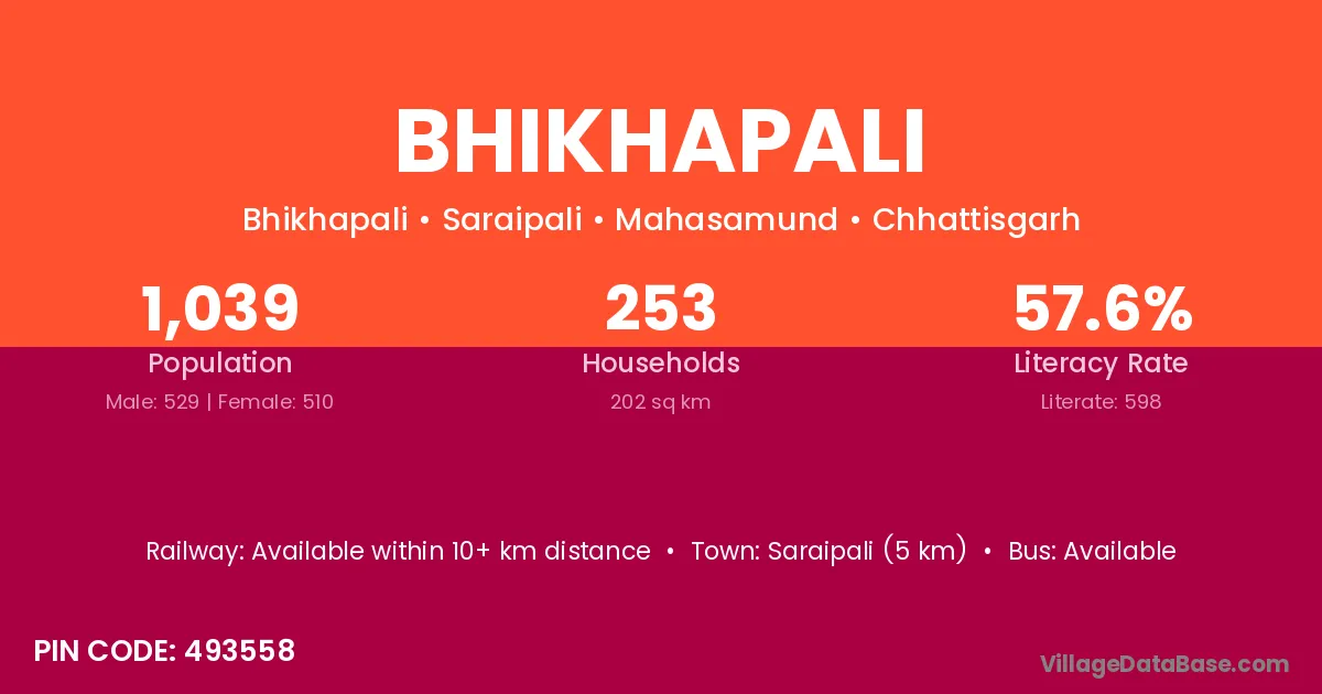 According to Census 2011 information, the village code of Bhikhapali village is 493445.