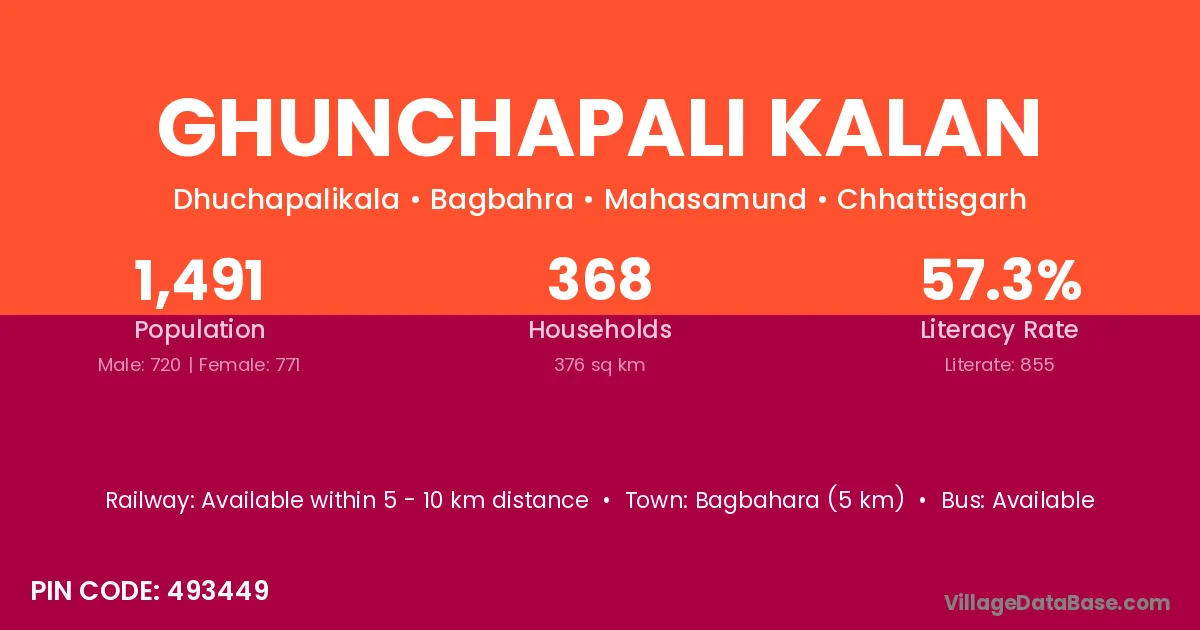 Bagbahara (5 km) is the nearest town to Ghunchapali Kalan village for major economic activities and is located approximately 5 km away.