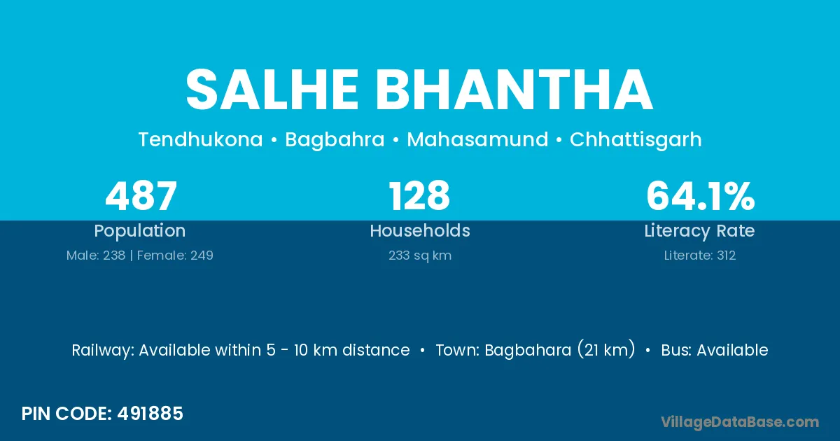Salhe Bhantha village has a total population of 487 people, of which 238 are males and 249 are females.