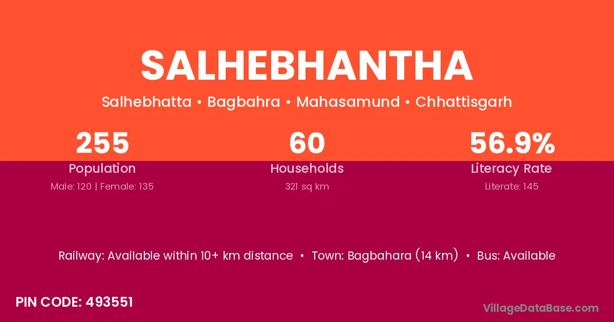 Salhebhantha village has a total population of 255 people, of which 120 are males and 135 are females.