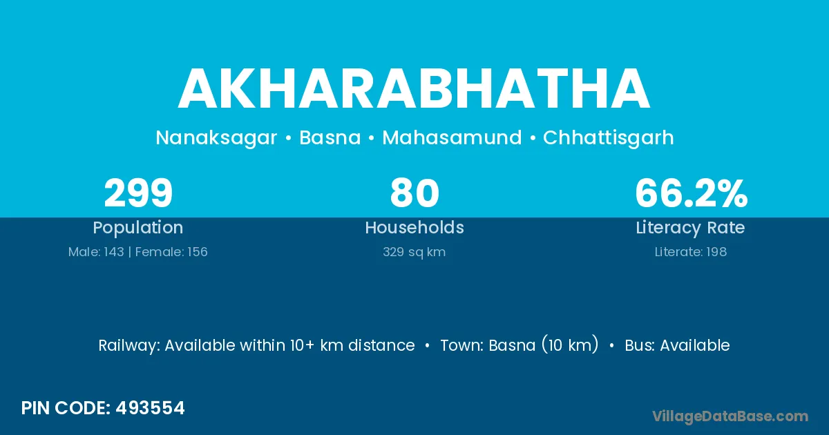 Basna (10 km) is the nearest town to Akharabhatha village for major economic activities and is located approximately 10 km away.