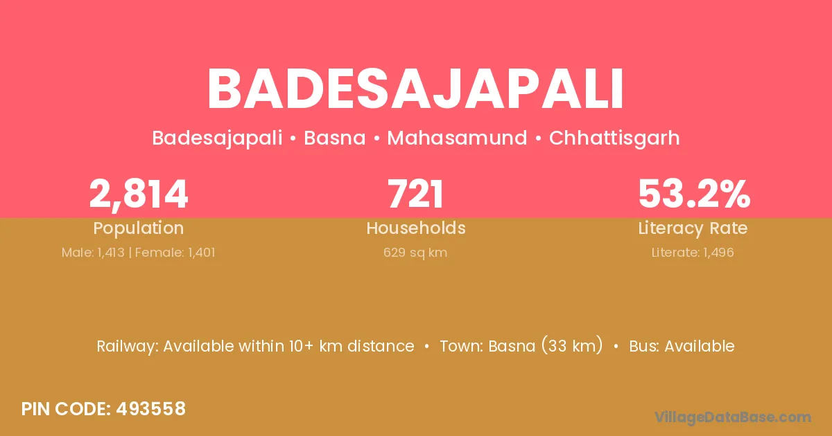 Badesajapali village is located in the Basna Tehsil of the Mahasamund district in Chhattisgarh .