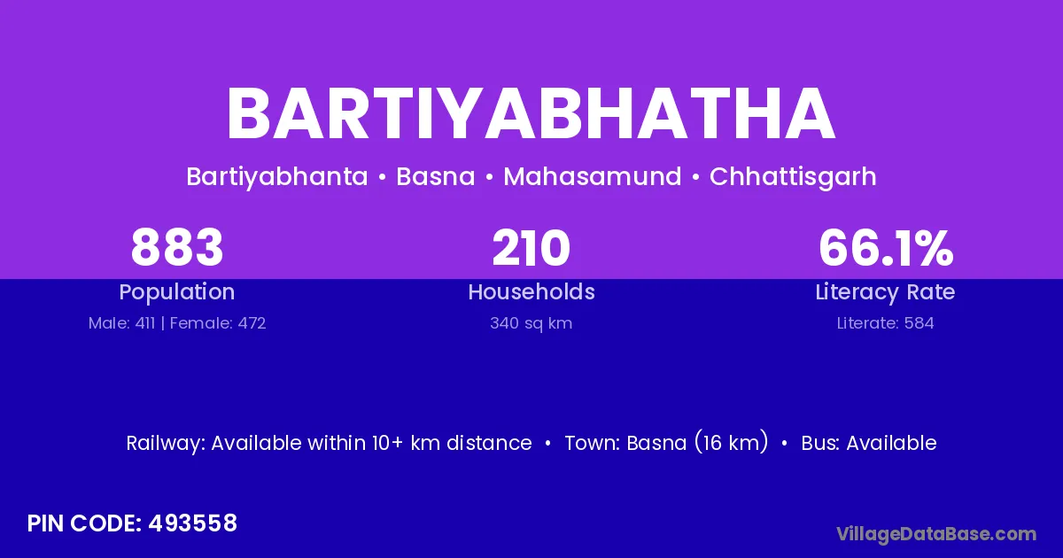Bartiyabhatha village is located in the Basna Tehsil of the Mahasamund district in Chhattisgarh .