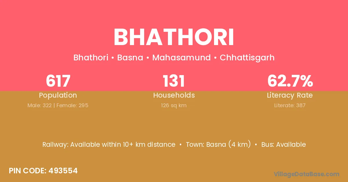 Bhathori village is located in the Basna Tehsil of the Mahasamund district in Chhattisgarh .