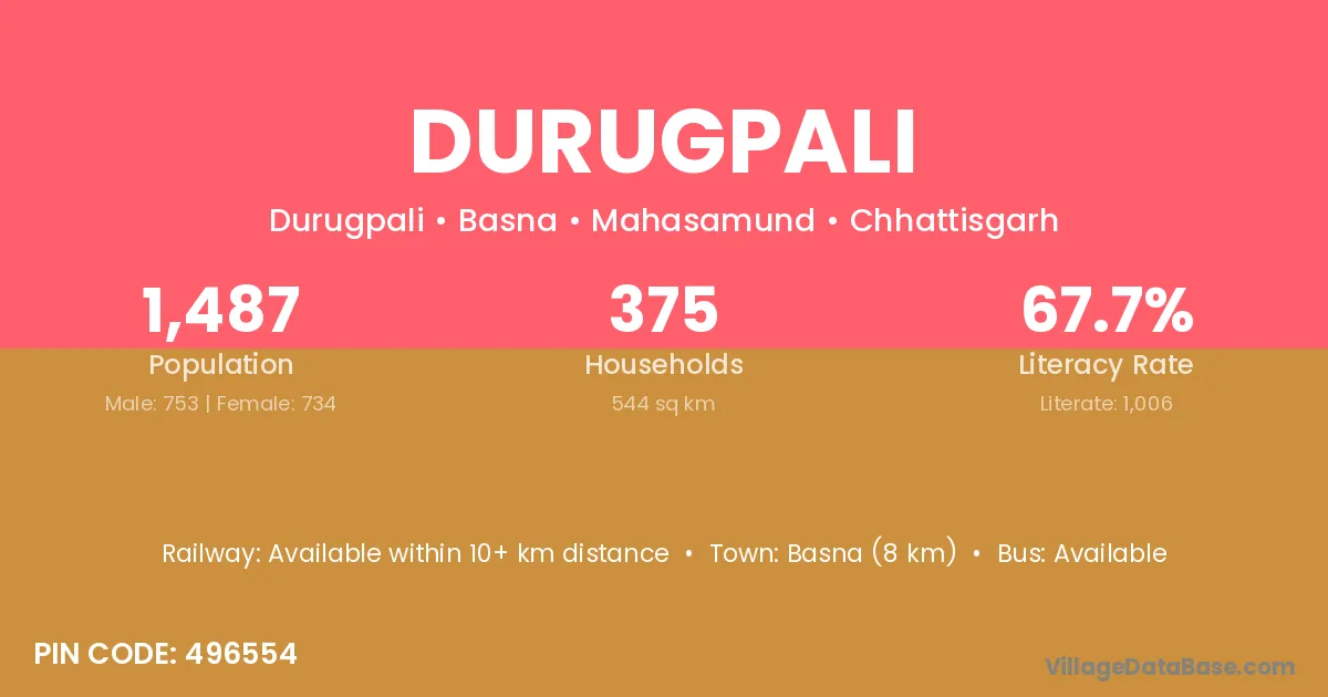 Durugpali village has a total population of 1,487 people, of which 753 are males and 734 are females.