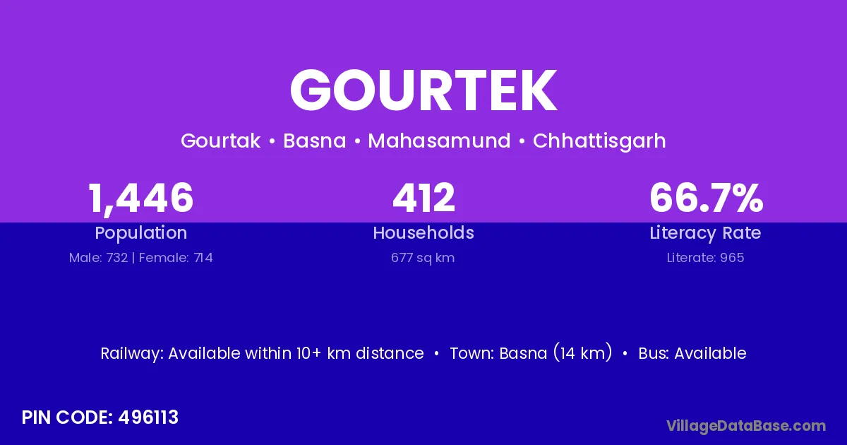 According to Census 2011 information, the village code of Gourtek village is 496113.
