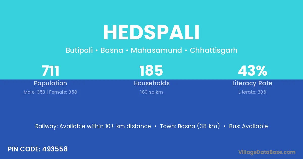 Hedspali village has a total population of 711 people, of which 353 are males and 358 are females.