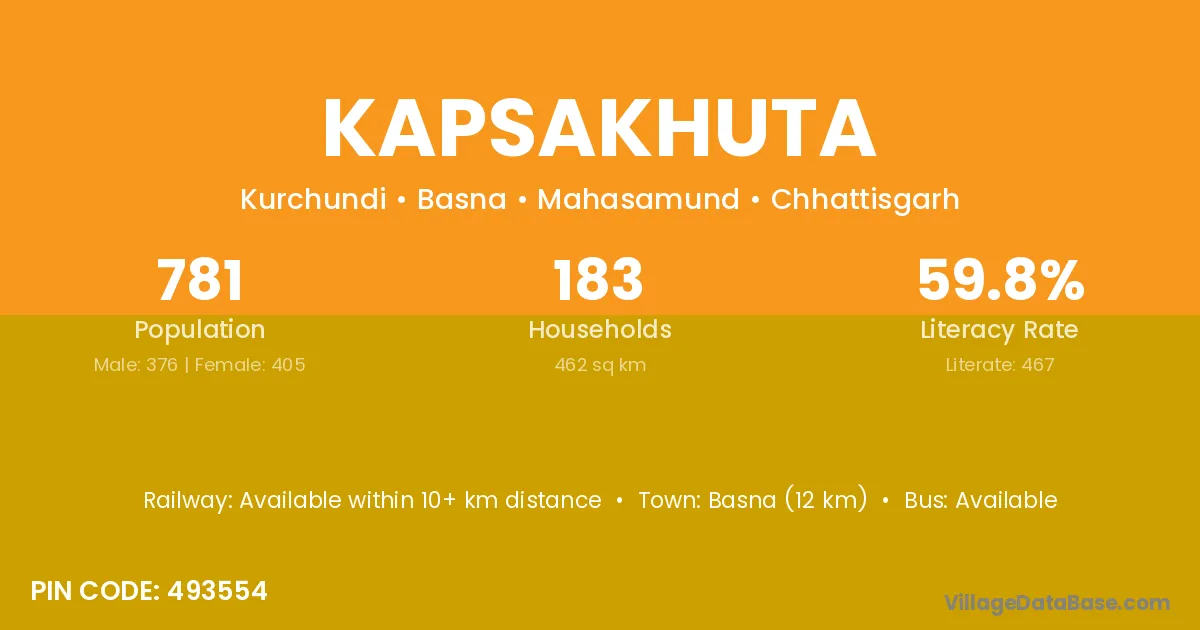 Basna (12 km) is the nearest town to Kapsakhuta village for major economic activities and is located approximately 12 km away.