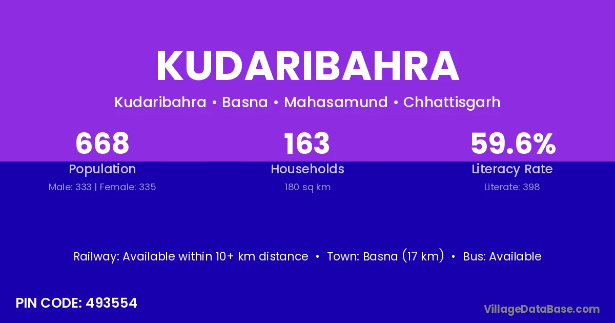Basna (17 km) is the nearest town to Kudaribahra village for major economic activities and is located approximately 17 km away.