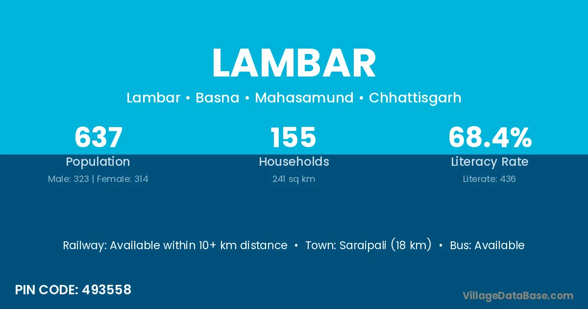 Saraipali (18 km) is the nearest town to Lambar village for major economic activities and is located approximately 18 km away.