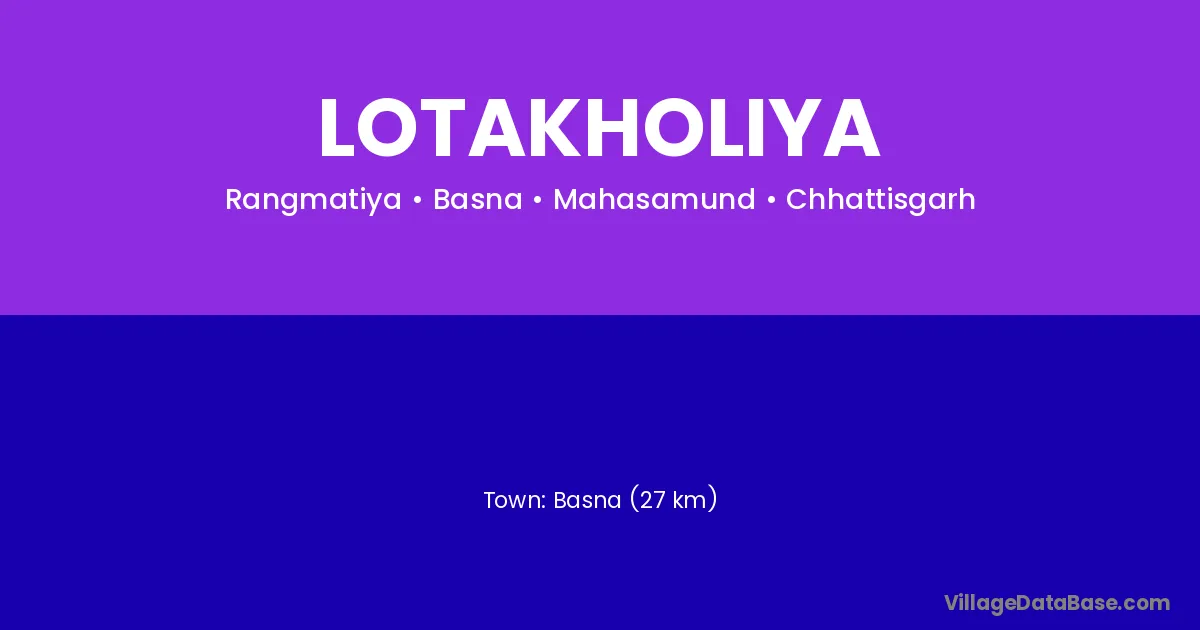 Basna (27 km) is the nearest town to Lotakholiya village for major economic activities and is located approximately 27 km away.