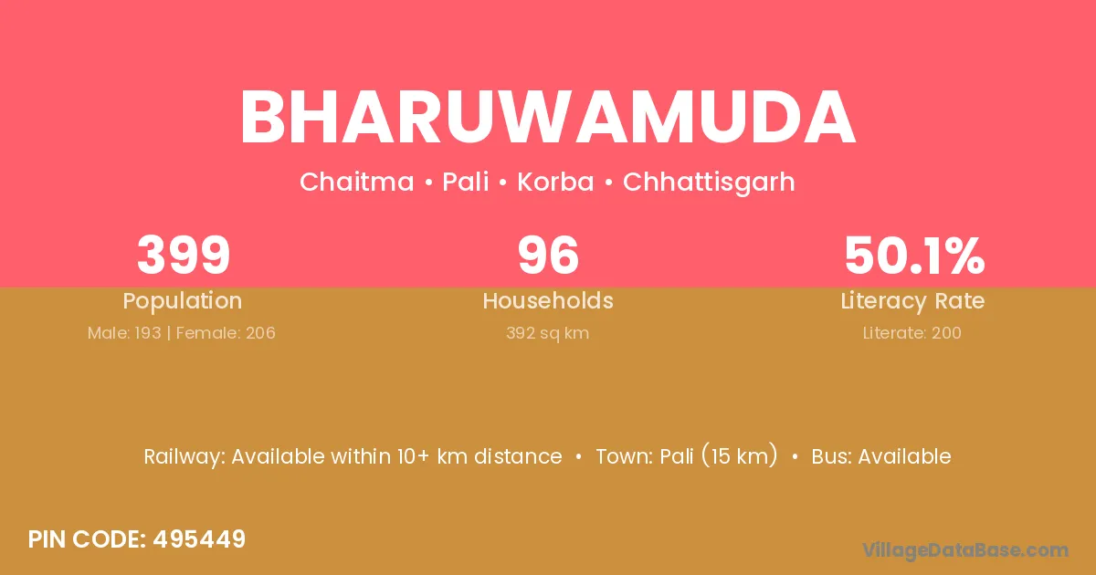 Bagbahara (30 km) is the nearest town to Bharuwamuda village for major economic activities and is located approximately 30 km away.