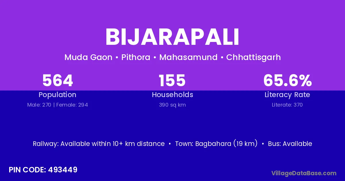 Bijarapali village is located in the Pithora Tehsil of the Mahasamund district in Chhattisgarh .