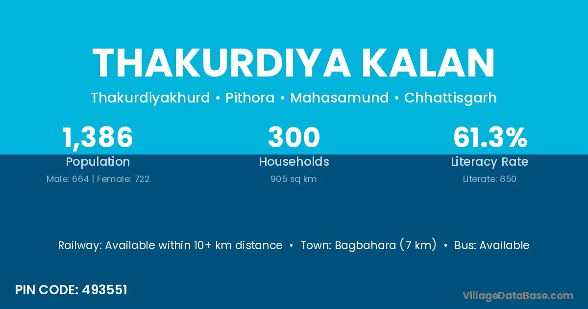 According to Census 2011 information, the village code of Thakurdiya Kalan village is 493551.