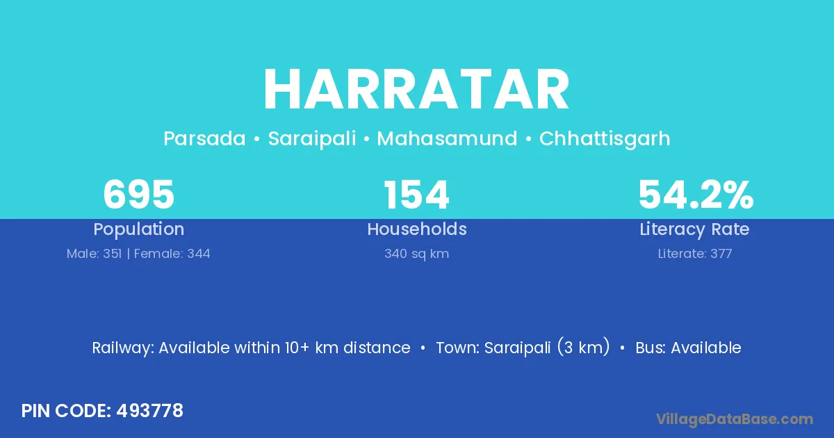 Saraipali (3 km) is the nearest town to Harratar village for major economic activities and is located approximately 3 km away.