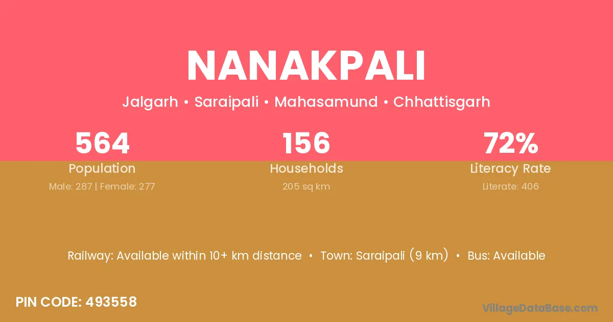 Saraipali (9 km) is the nearest town to Nanakpali village for major economic activities and is located approximately 9 km away.