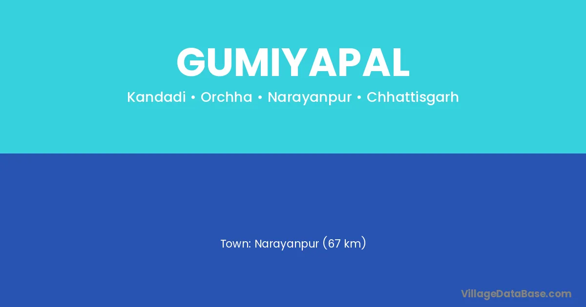 Narayanpur (20 km) is the nearest town to Gumiyapal village for major economic activities and is located approximately 20 km away.