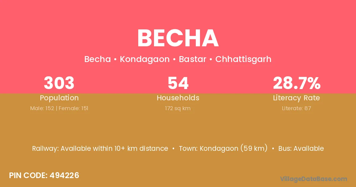 According to Census 2011 information, the village code of Becha village is 494331.