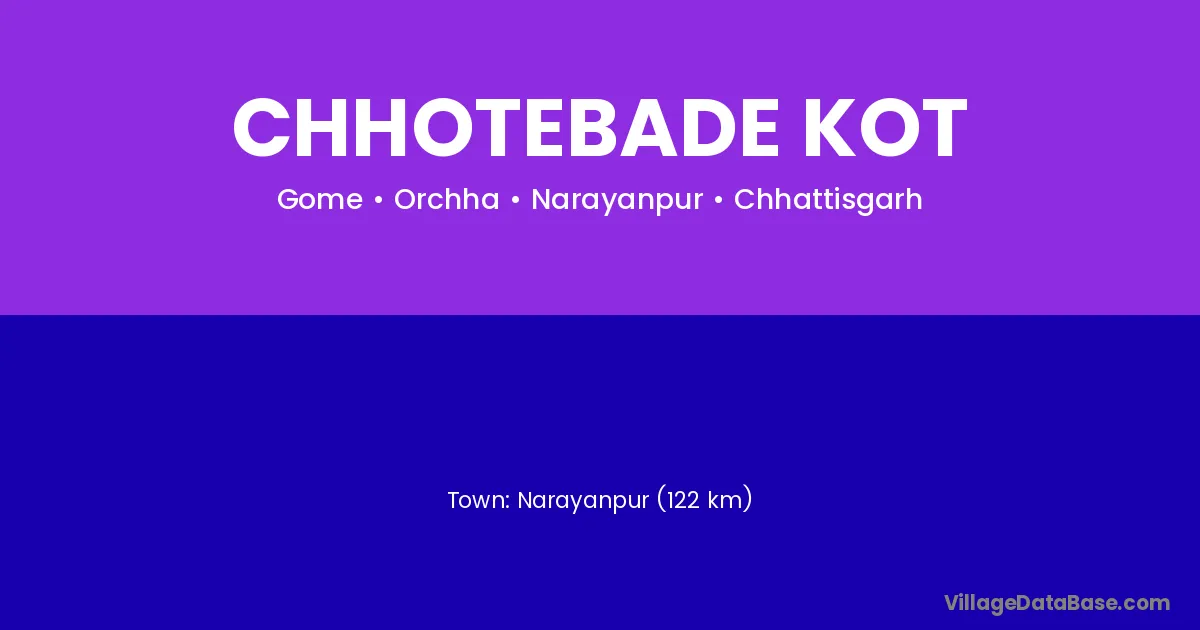 Narayanpur (122 km) is the nearest town to Chhotebade Kot village for major economic activities and is located approximately 122 km away.