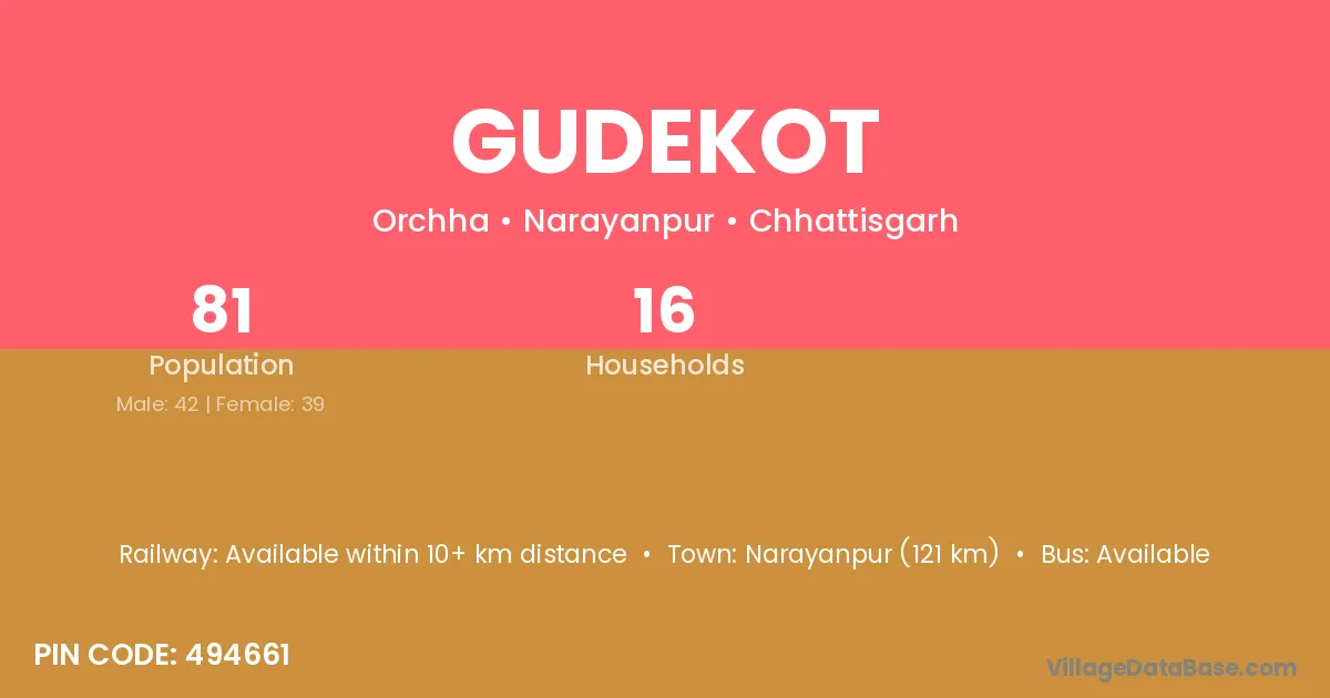Gudekot village is located in the Orchha Tehsil of the Narayanpur district in Chhattisgarh .