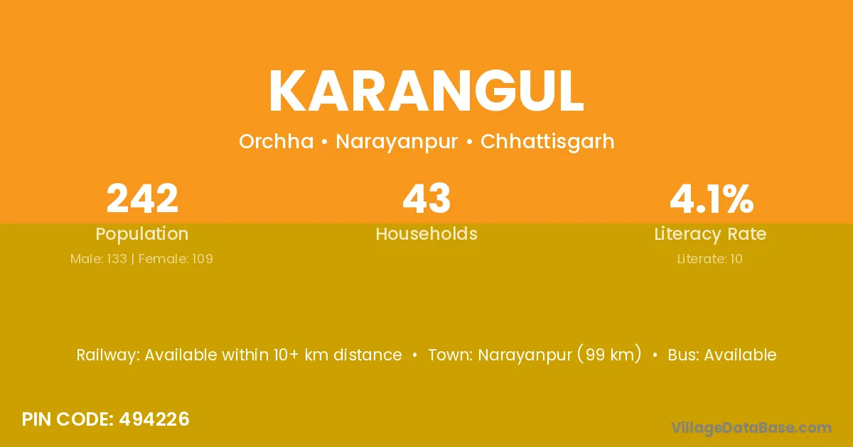 According to Census 2011 information, the village code of Karangul village is 494226.