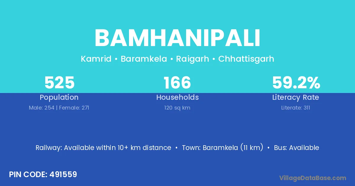Baramkela (11 km) is the nearest town to Bamhanipali village for major economic activities and is located approximately 11 km away.