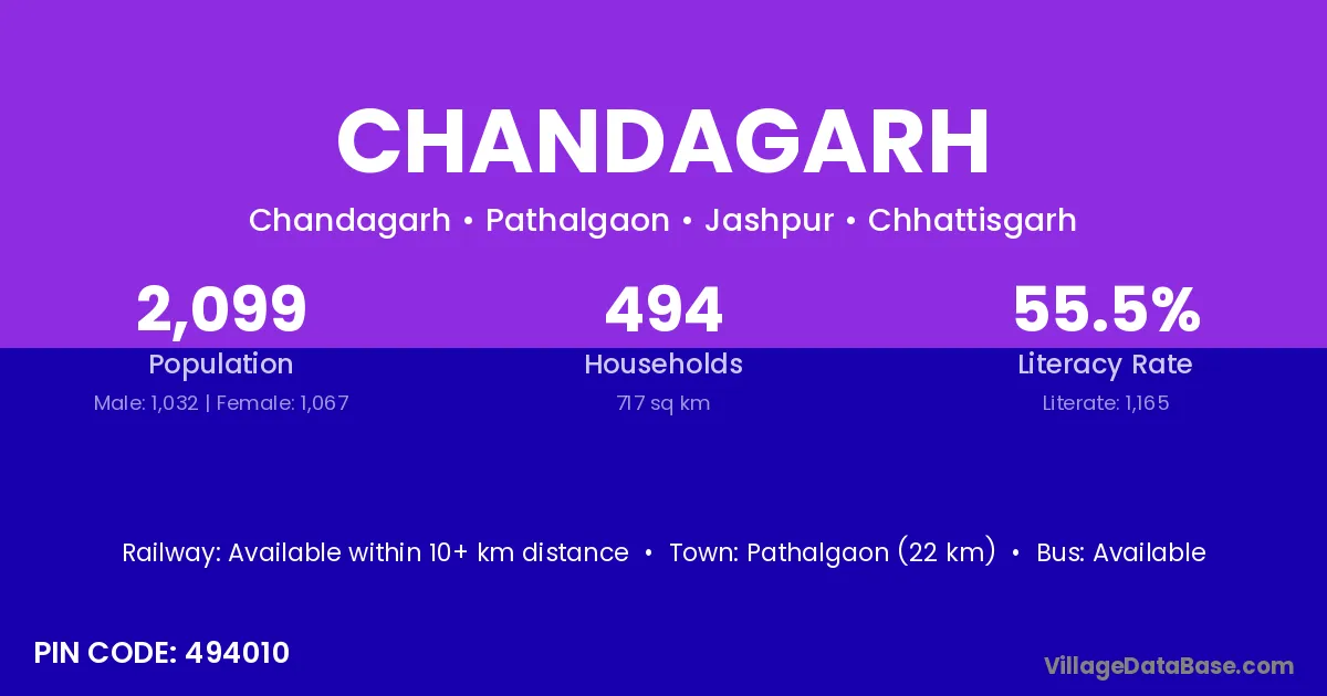 Baramkela (20 km) is the nearest town to Chandagarh village for major economic activities and is located approximately 20 km away.